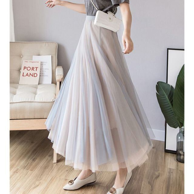コントラストカラーチュ-ル重ねAラインスカート【3色】 sk395