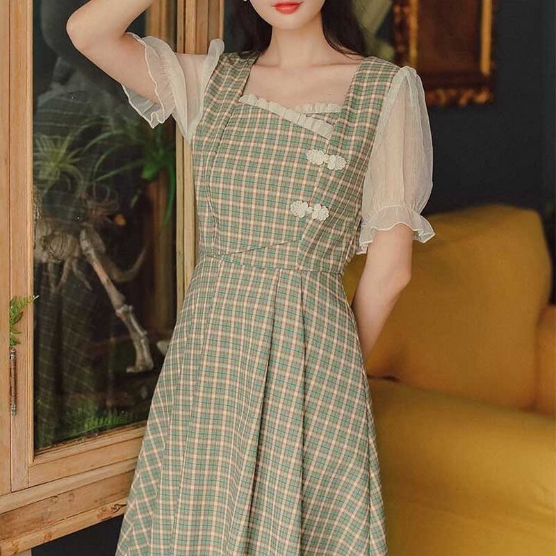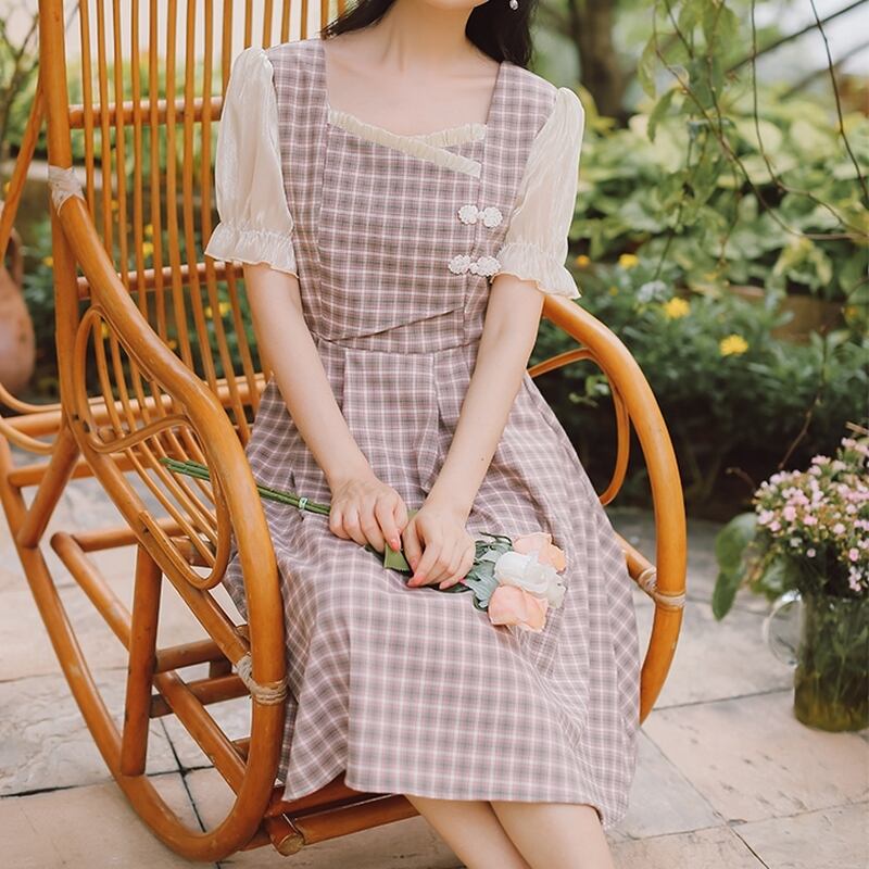 チャイナボタン チェック柄ワンピース【2色】 on868